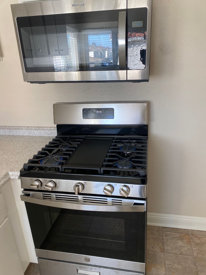 Kitchen - stainless microwave & 5 burner stainless gas stove