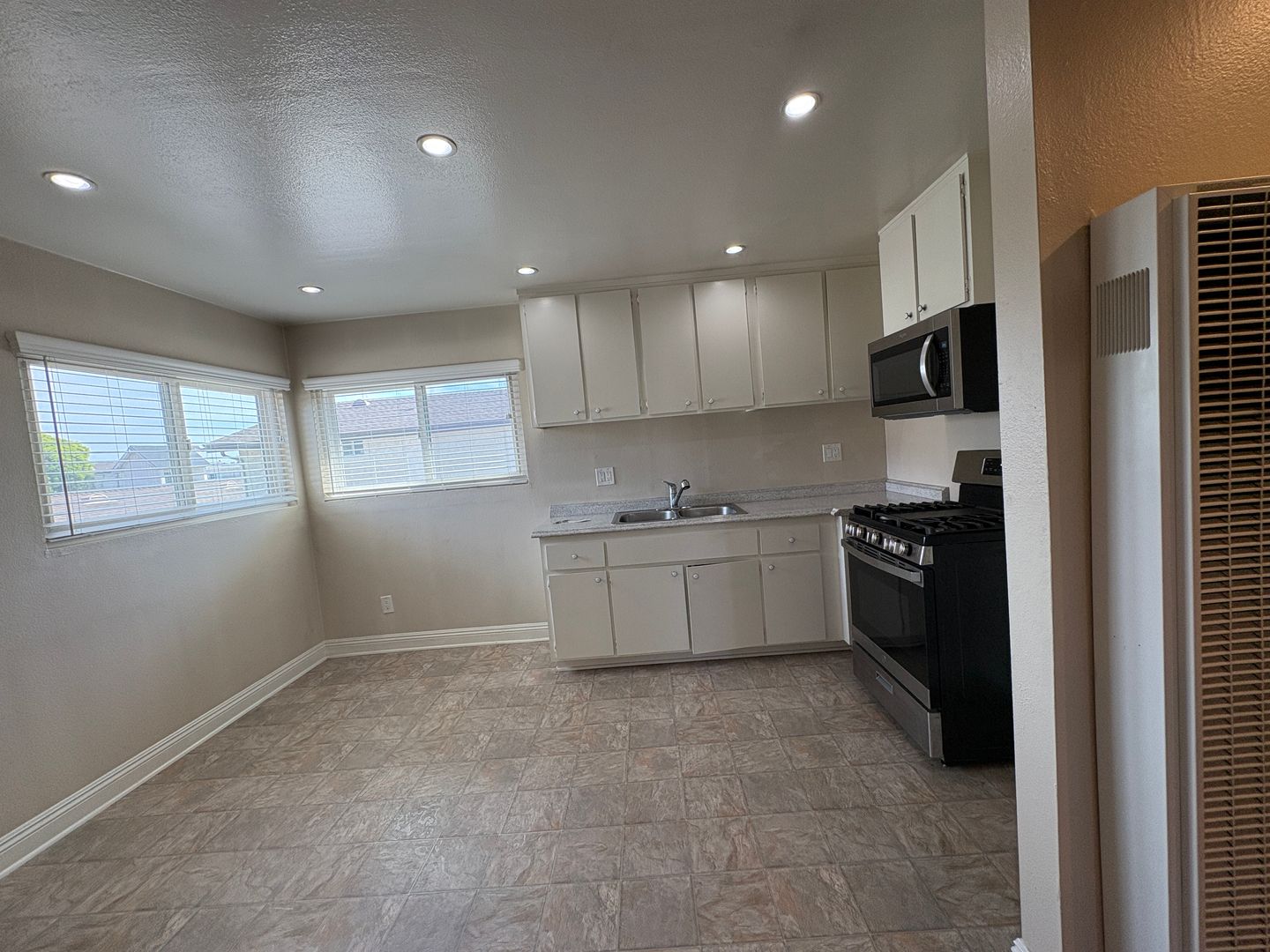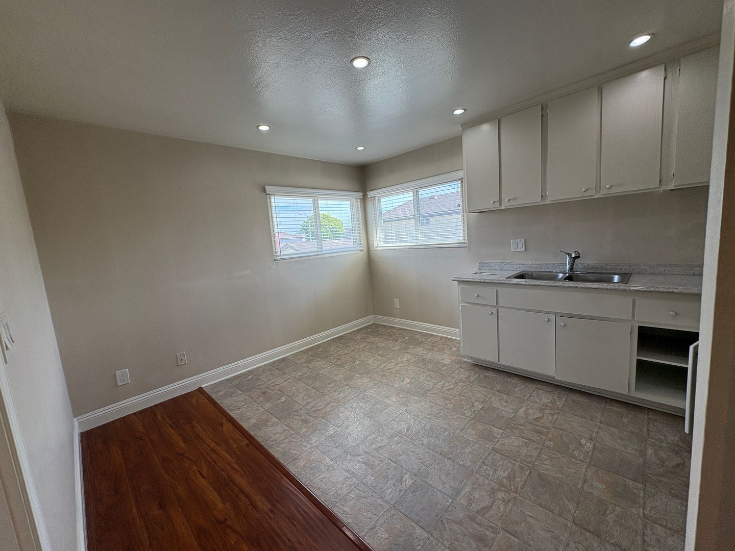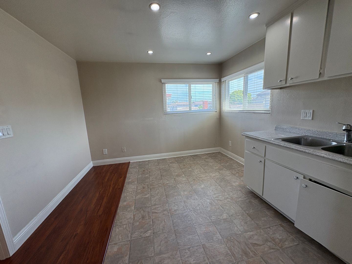 Kitchen opens to dining room and has recessed lights