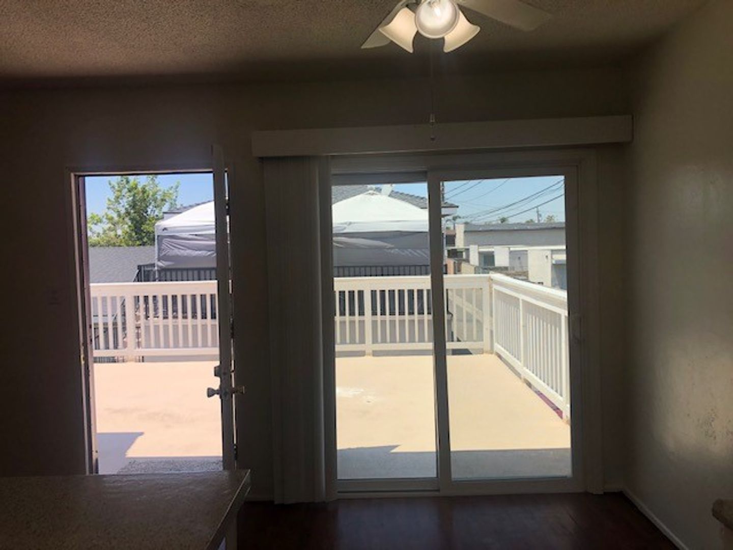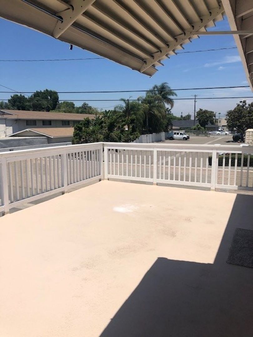 Lovely upstairs two bedroom 1 bathroom unit with huge private patio. New vinyl plank flooring gin kitchen dining room living room and hallway. Carpet in both bedrooms. Both bedrooms have large closets and ceiling fans. Kitchen has newly painted countertops and a gas stove. Bathroom has new quartz countertop with new sink. One car shared garage included. On site laundry room. No Animals. Tenant pays their own Anaheim utilities. Gas and electric plus a proportional share of building utilities. Rent 2100. Deposit $1,900. Call Kristi to schedule a viewing 7.1.4.3.3.0.2.4.8.0.