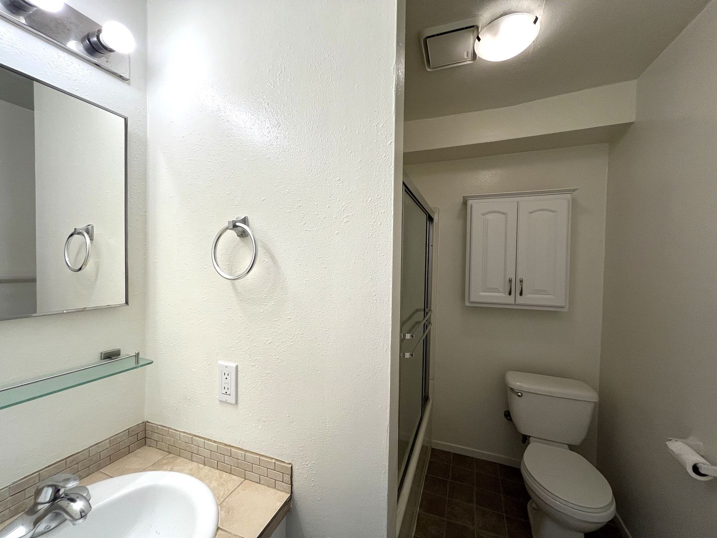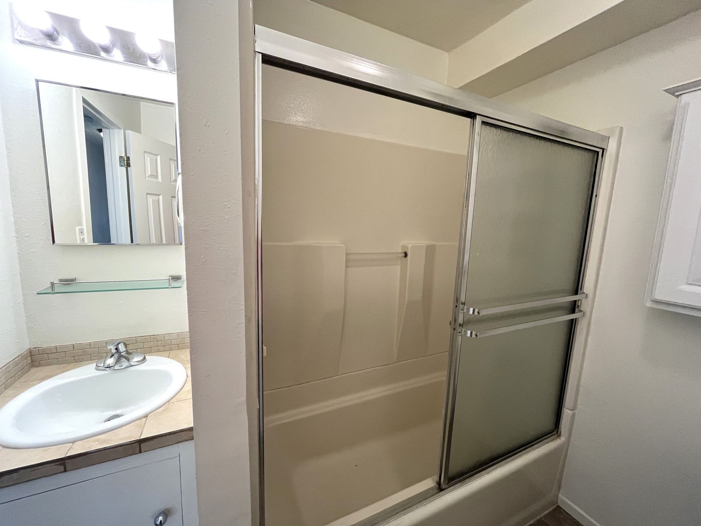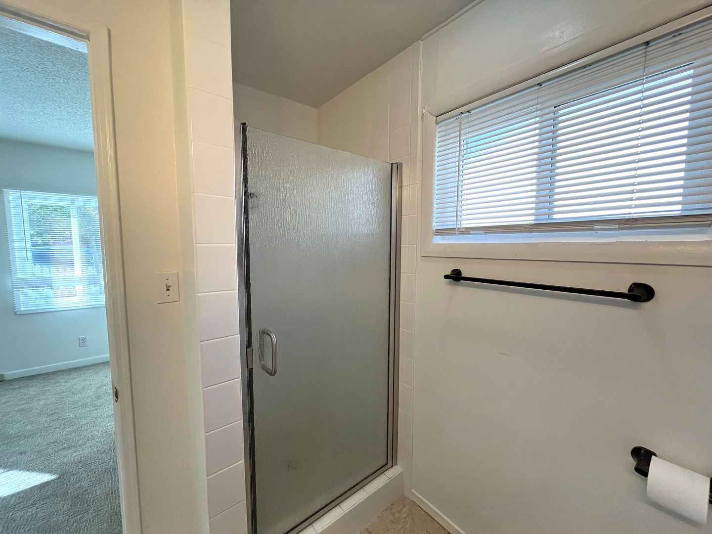 Master bath tiled shower.
