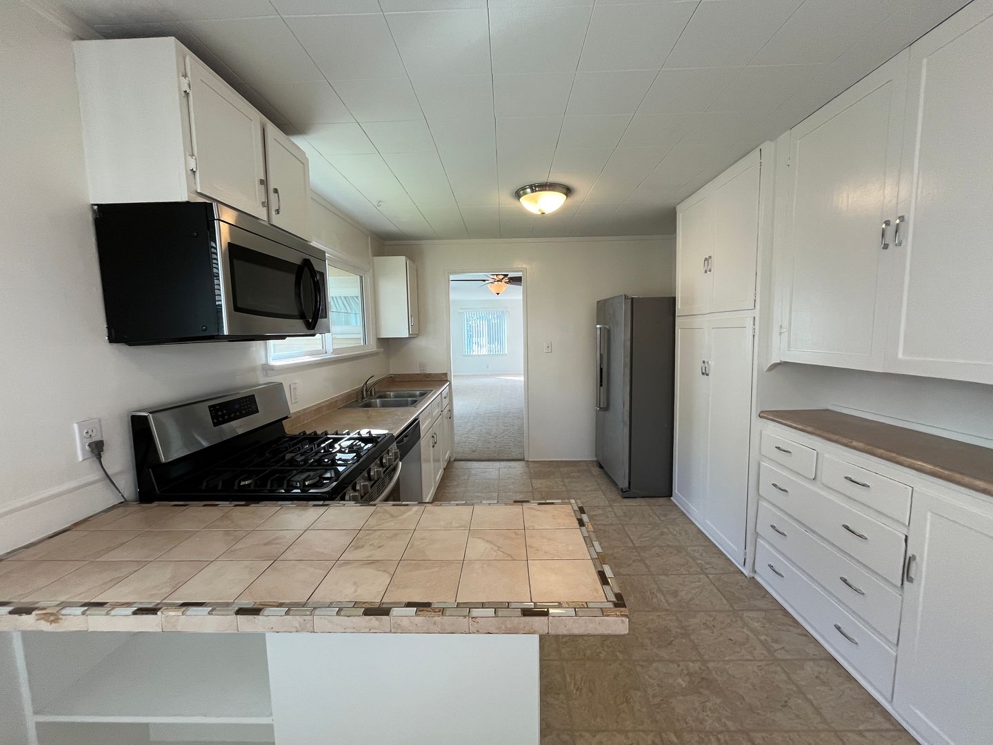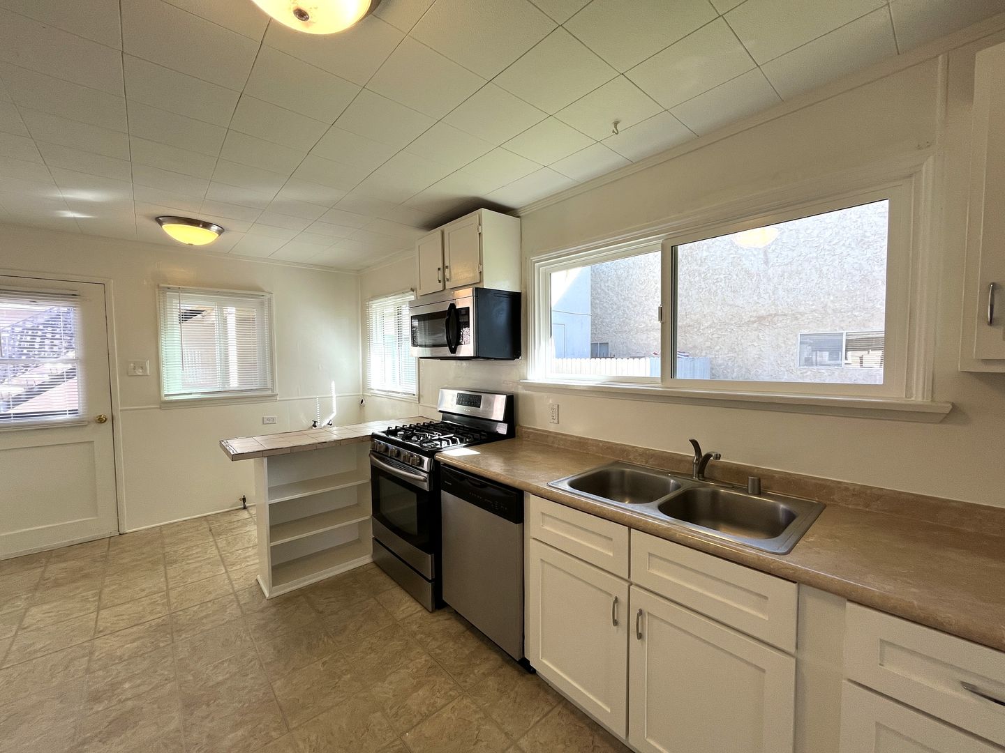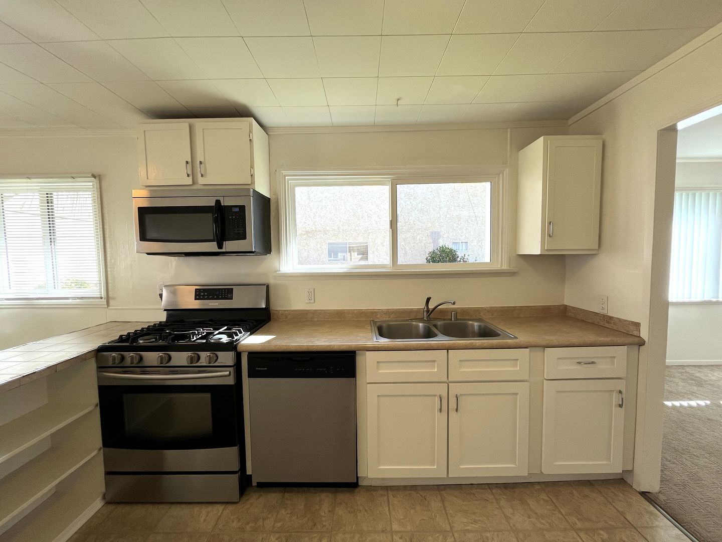 Refrigerator, gas stove, dishwasher and microwave included.