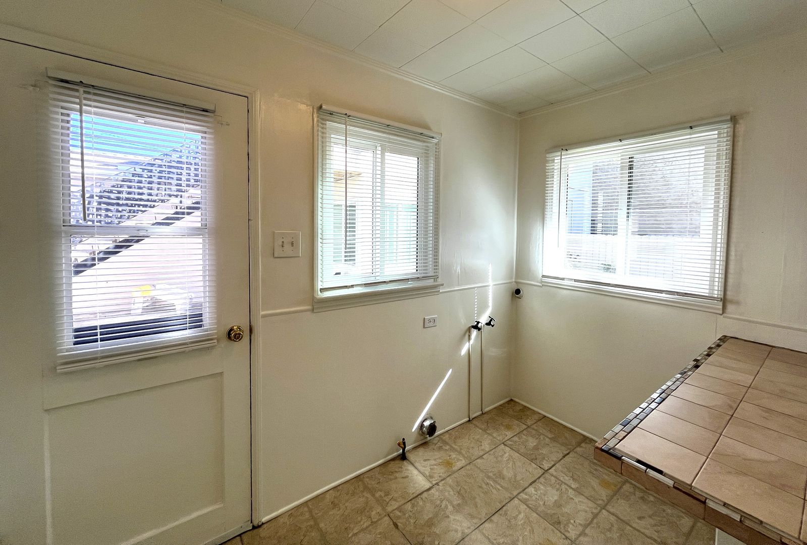 Washer/Dryer hook ups in the kitchen.