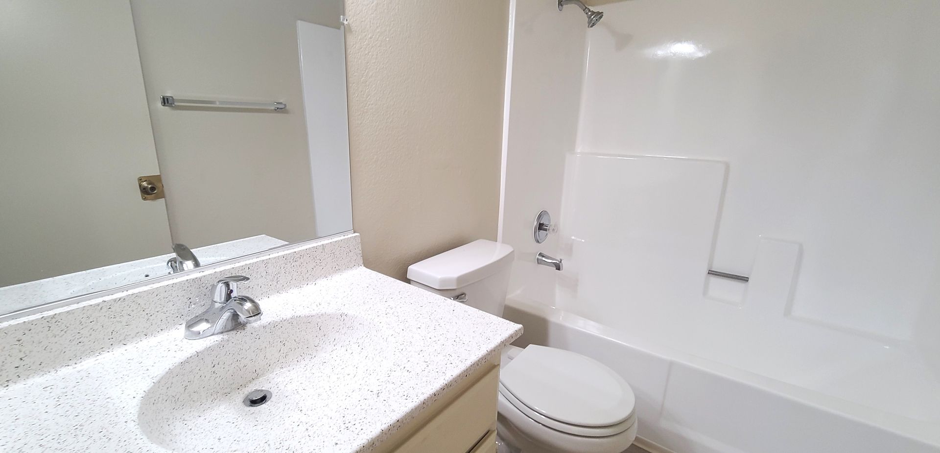 New medicine cabinets. New mirrors. Refinished tubs/sinks. New exhaust fans.