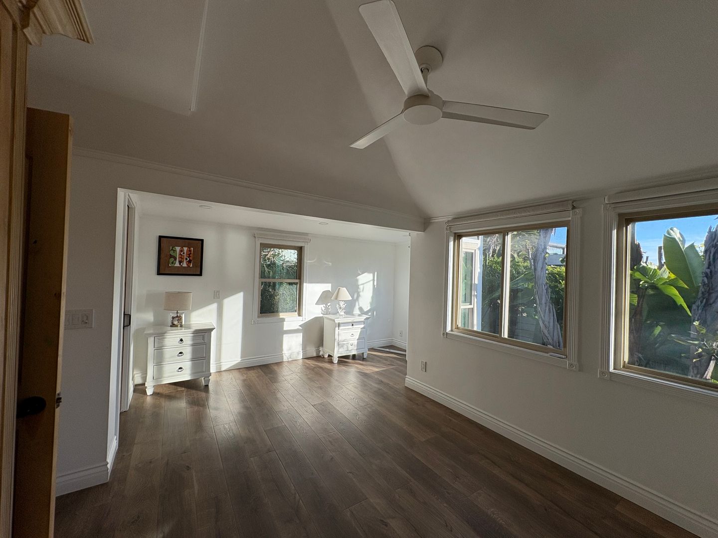The bedrooms have an abundance of natural lighting and vaulted ceilings with ceiling fans.