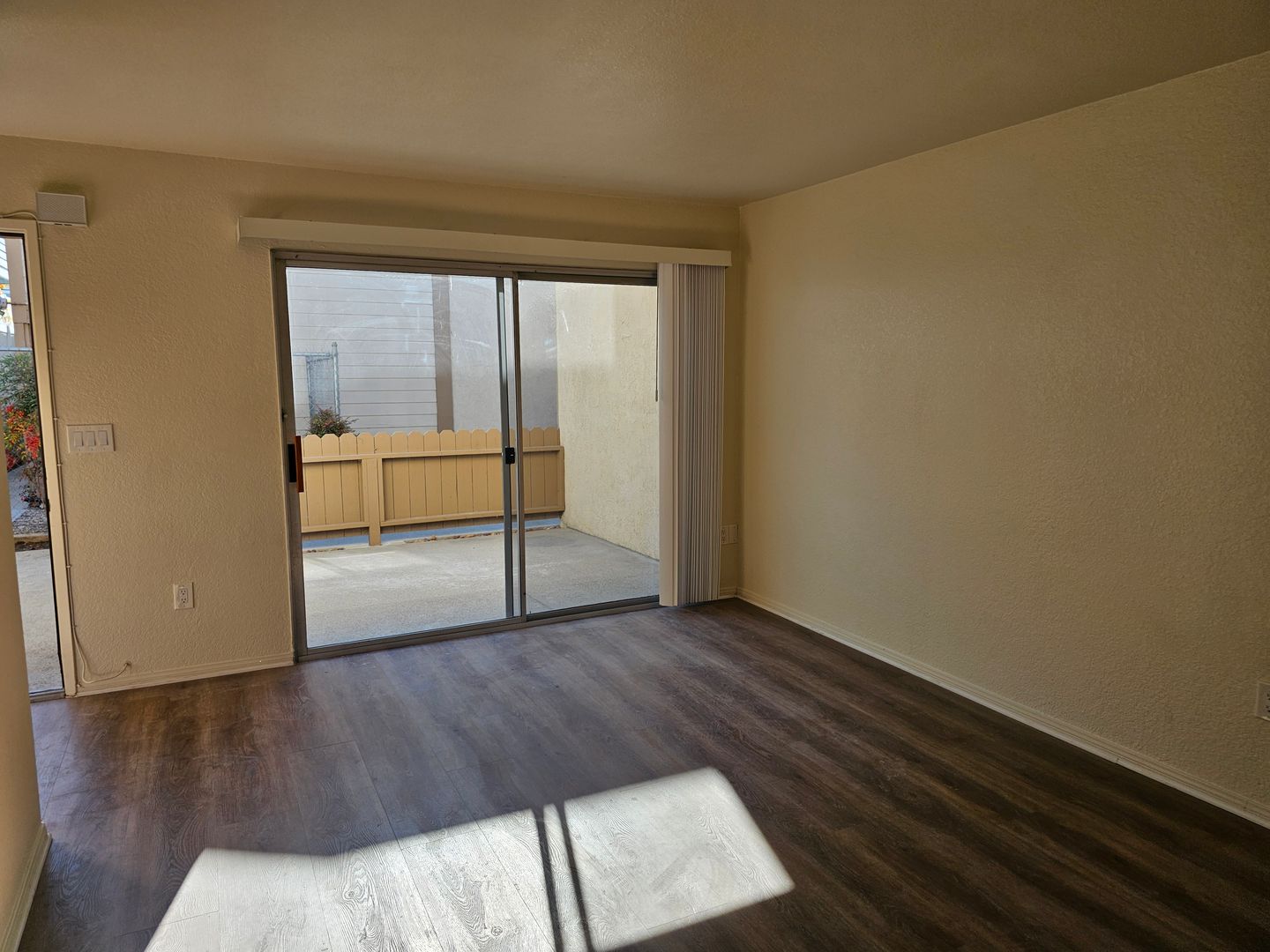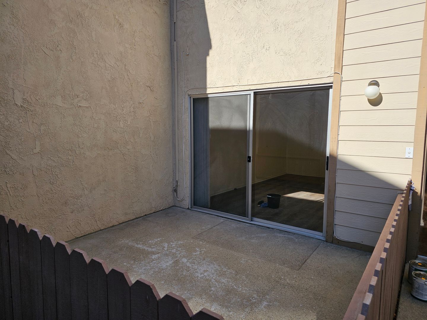 It has a large, uncovered fenced patio (12'7" x 10'10") off the living room.