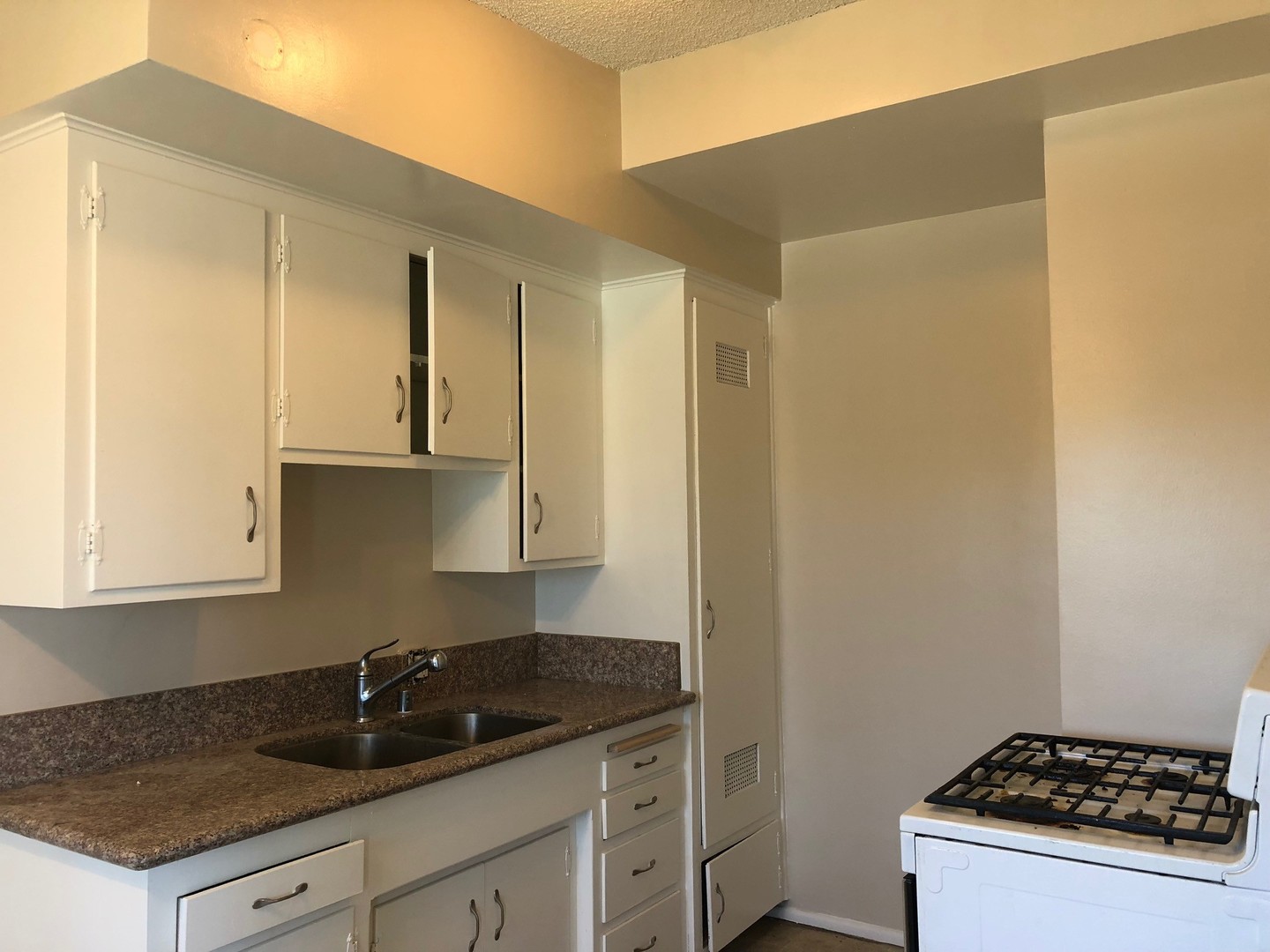 Granite counters, new kitchen floor , gas cooking shared garage with remote access