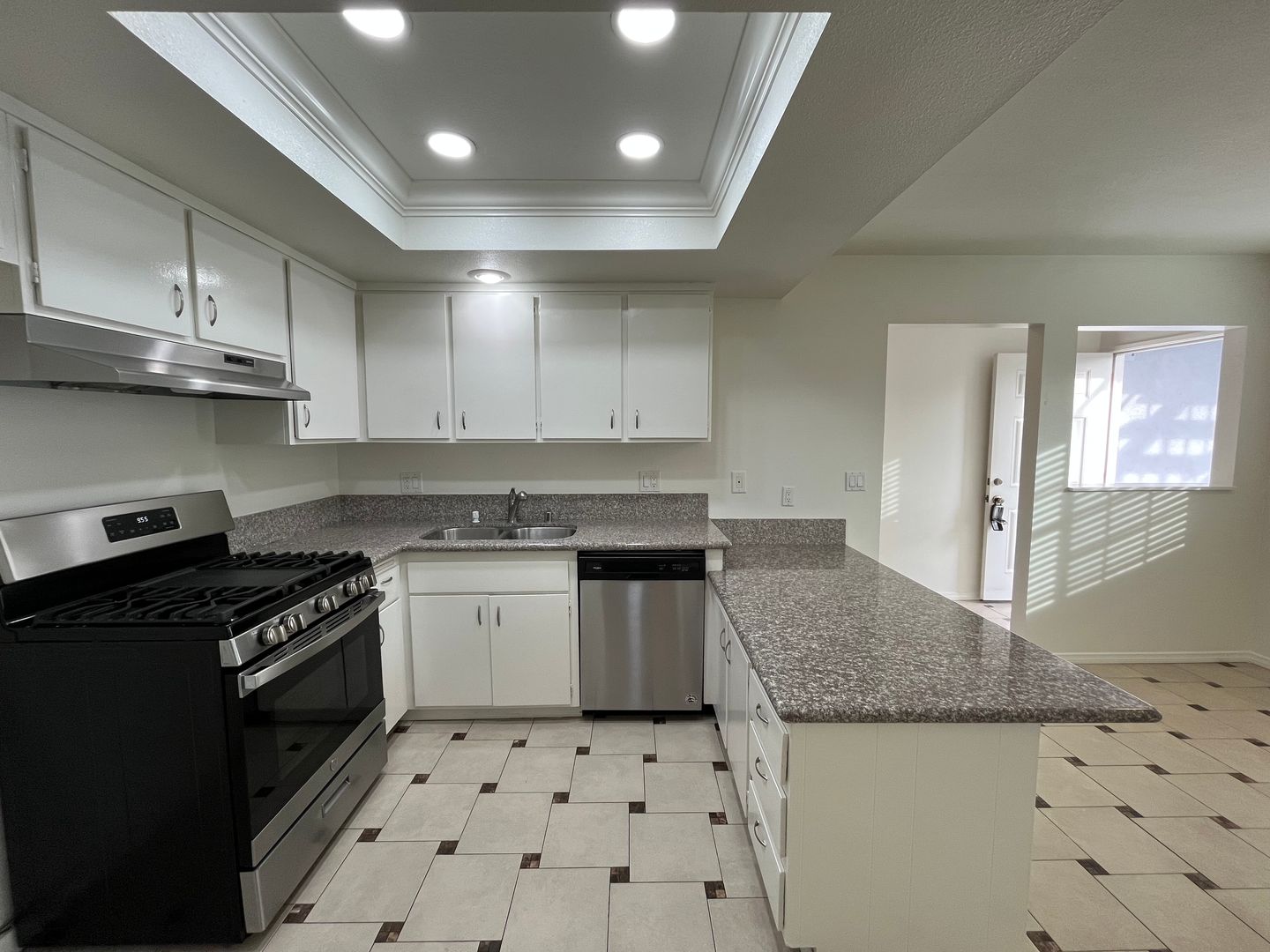 Stainless steel appliances - gas stove, dishwasher and stove hood