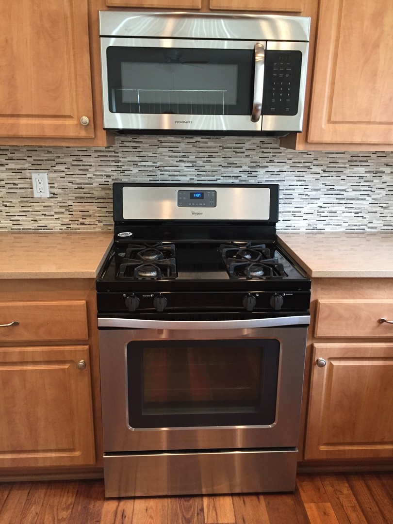 Stainless sinks, dishwasher, microwave, gas oven & stove